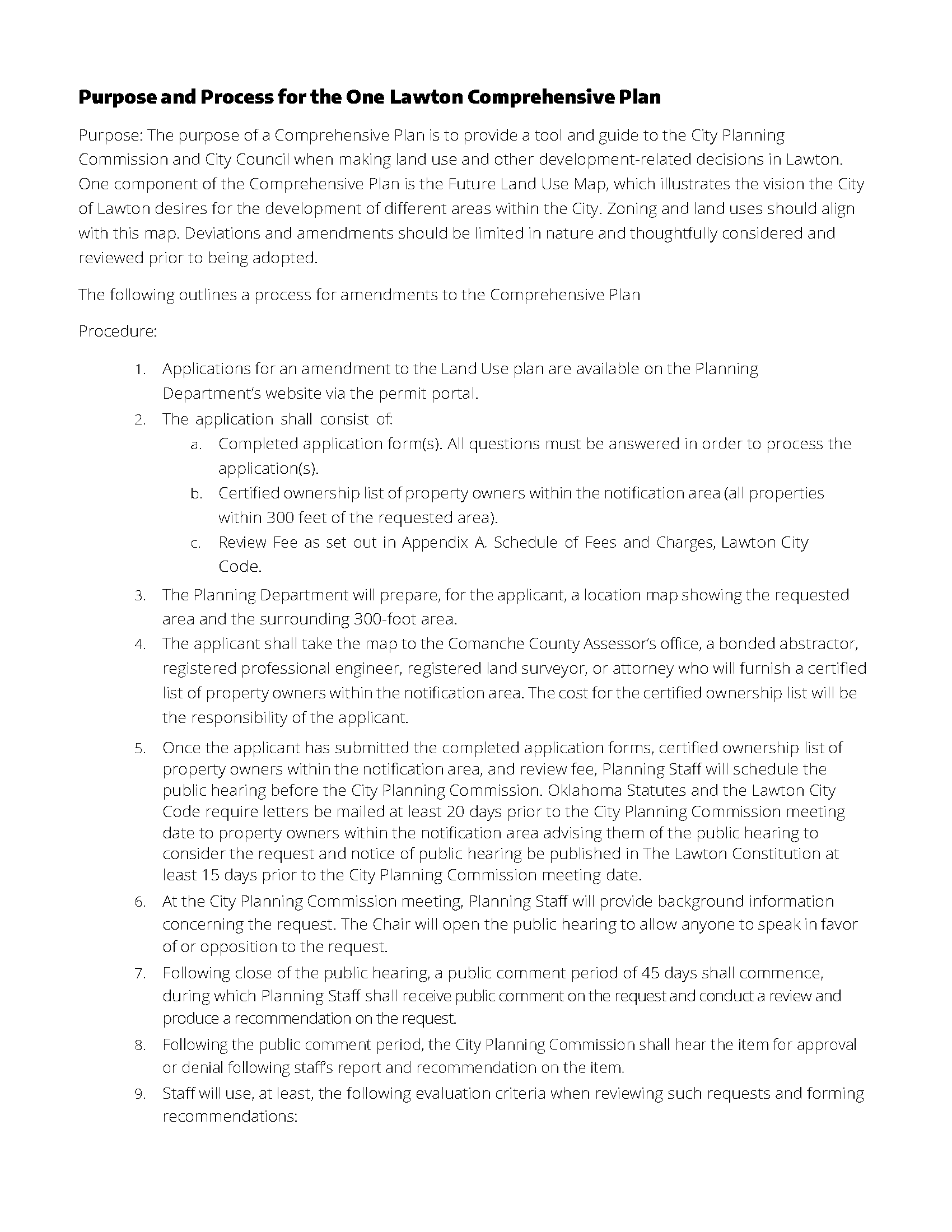 Purpose and Process for the One Lawton Comprehensive Plan